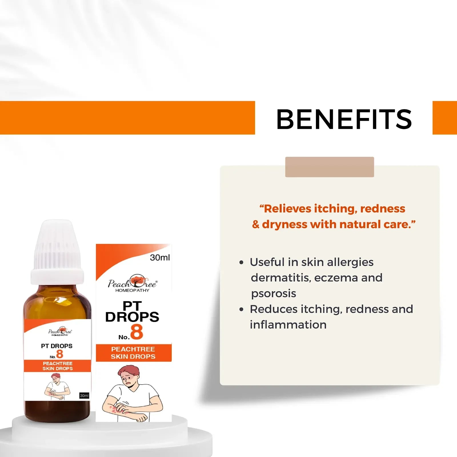 PT Drops No. 8 provides soothing relief from eczema, dermatitis, and skin allergies. It helps reduce itching, redness, and inflammation while promoting clear and healthy skin.